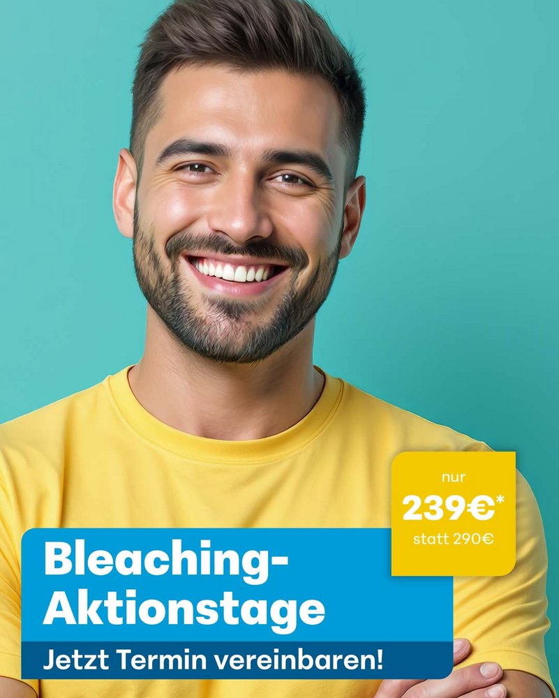 Ein strahlendes Lächeln ist einfach rundum sympathisch. In der Psychologie heißt es, dass Menschen mit weißen Zähnen unterbewusst sogar für gesünder und gepflegter gehalten werden. Die meisten Menschen haben allerdings natürlicherweise nicht die hellste Zahnfarbe. Überdies dunkeln Zähne im Lauf des Lebens nach. Oberflächliche Verfärbungen entfernt eine Professionelle Zahnreinigung. Soll die Zahnsubstanz schonend und effektiv aufgehellt werden, empfiehlt sich ein Bleaching (Zahnaufhellung) beim zahnmedizinisch ausgebildeten Profi.